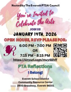Congratulations to our JHS students whose entries advanced to the council level of the competition. Their art will be on display at the Community Resource Center (CRC) 3900 Broadway Everett December 4th-January 14th. They will find out if they advance to the state level of the competition Jan 14th at the Council Celebration. Please rsvp if you think you would like to attend-see QR on flyer.
